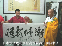 江潤初先生自幼酷愛書法,在書法藝術生涯中眷戀翰墨潤筆一直默默耕耘,兼取眾長,將楷、草、隸、篆之精髓四合為一,習之在技,修之在道。其書法突出體現“奇絕”兩字,“奇”能左右手開弓,用手臂、手腕、口齒、腳趾等肢體操筆習作應運自如。“絕”是落筆胸中浩如煙海,筆底雄風、不拘束循規蹈矩,獨樹一幟、一氣呵成。在當代書畫界堪稱“怪杰一絕”,被社會各界譽為“廣東書法奇才”。中國書法雜志社社長周志高先生親自為其題寫齋名為“雙映閣”,中國書畫家協會主席劉金才書畫大師為其譽名題寫“書山之才”。